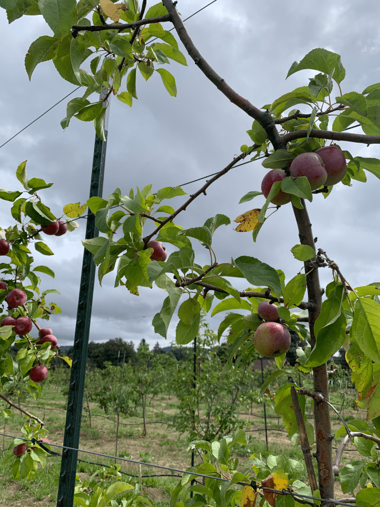 JFO, is super cute. Apparently the tickets got us into an apple tour as well as an opportunity to get our paws on their apples. I was surprised that we got a tour along with the apple picking – it’s probably described well on their website but I guess I skipped over that and went straight for all the juice on the apple picking. I missed a good chunk of the tour while I nursed Tiny but learned a few things I can share here. So their tickets are limited because their orchards are limited – yep, makes sense. The window for apple picking on their farm spans 4 weeks. And all their trees are dwarf trees.