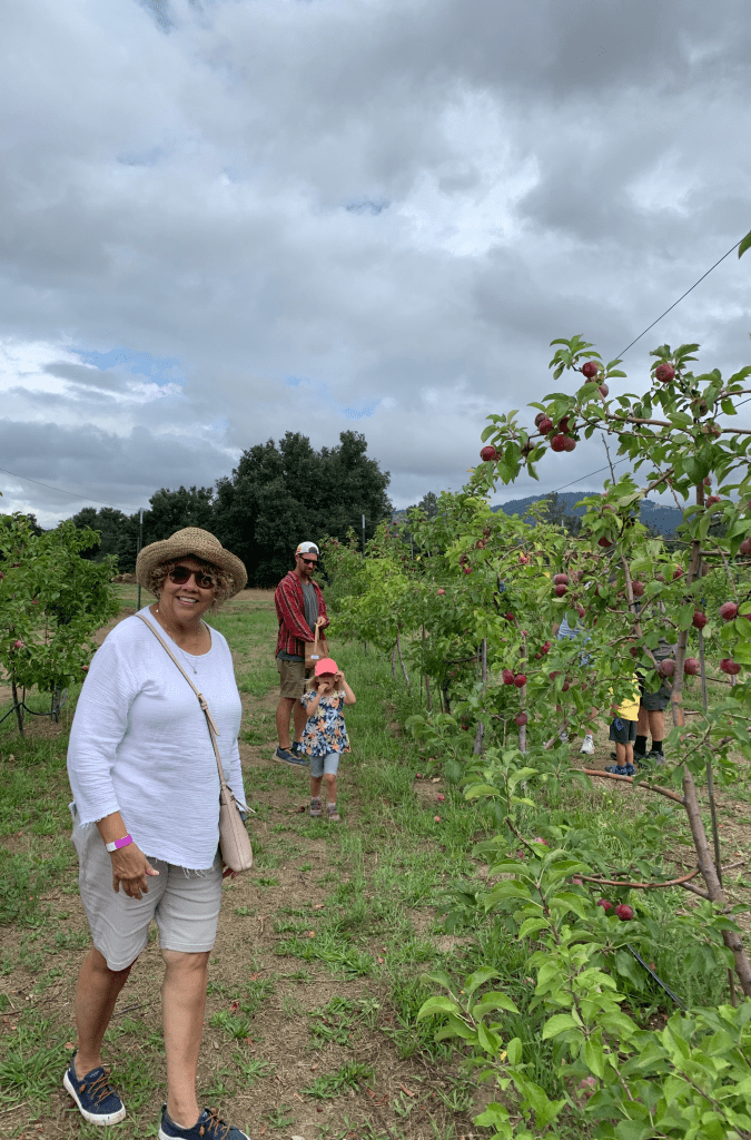 A few months ago I learned about a farm in the town of Julian appropriately named Julian Farm and Orchard. A cute 25-acre farm that has u-pick flowers and fruits throughout the year, with a pumpkin patch in the fall and Christmas tree lot in the winter. While learning about this cute farm, I saw that they have apple picking events. My toddler, bear, loves picking, then immediately eating (or throwing) the fruit from the trees in our yard. So apple picking seemed up on her list of favorite things. JFO, offers limited amount of tickets for their apple picking so I saved the date and snagged some tickets as soon as they were available. The girls, Gigi (my mama) and Poppy were in town (yahoo!) so we all pilled into the car to go grab us some apples. Yip!