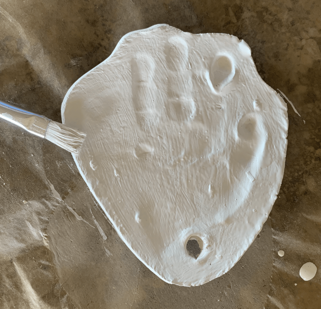 Yay time to paint! Paint the dried clay handprint, ghost white. Then set aside to dry.